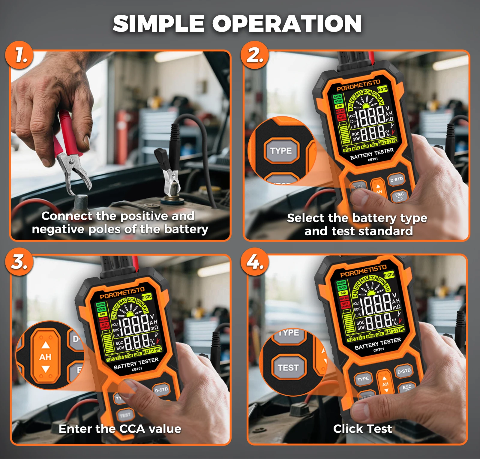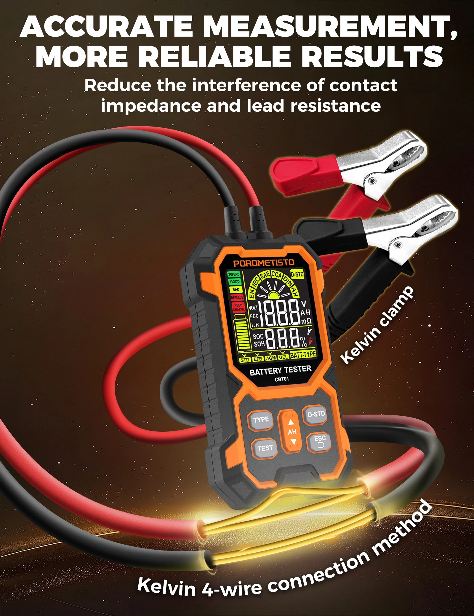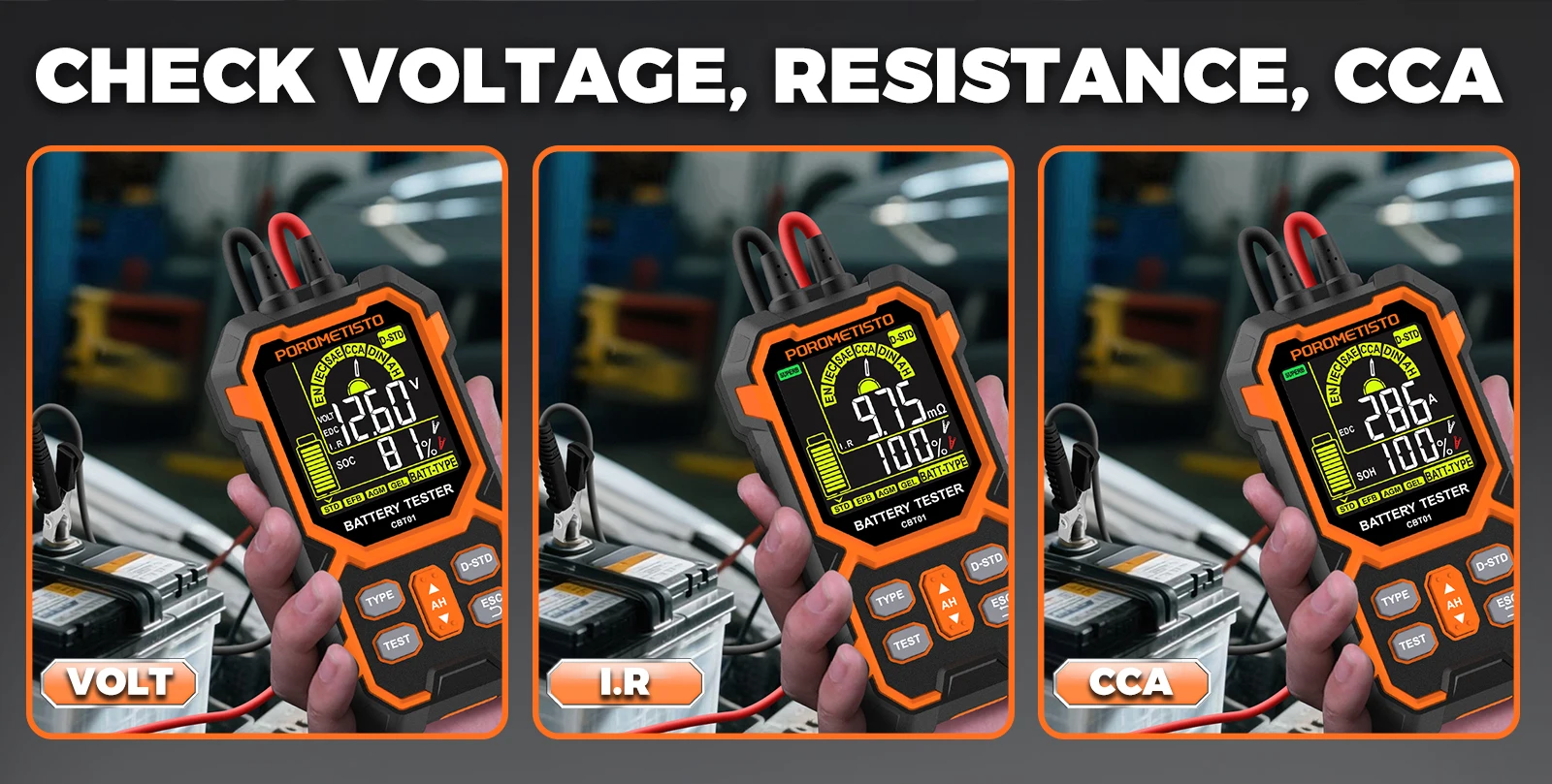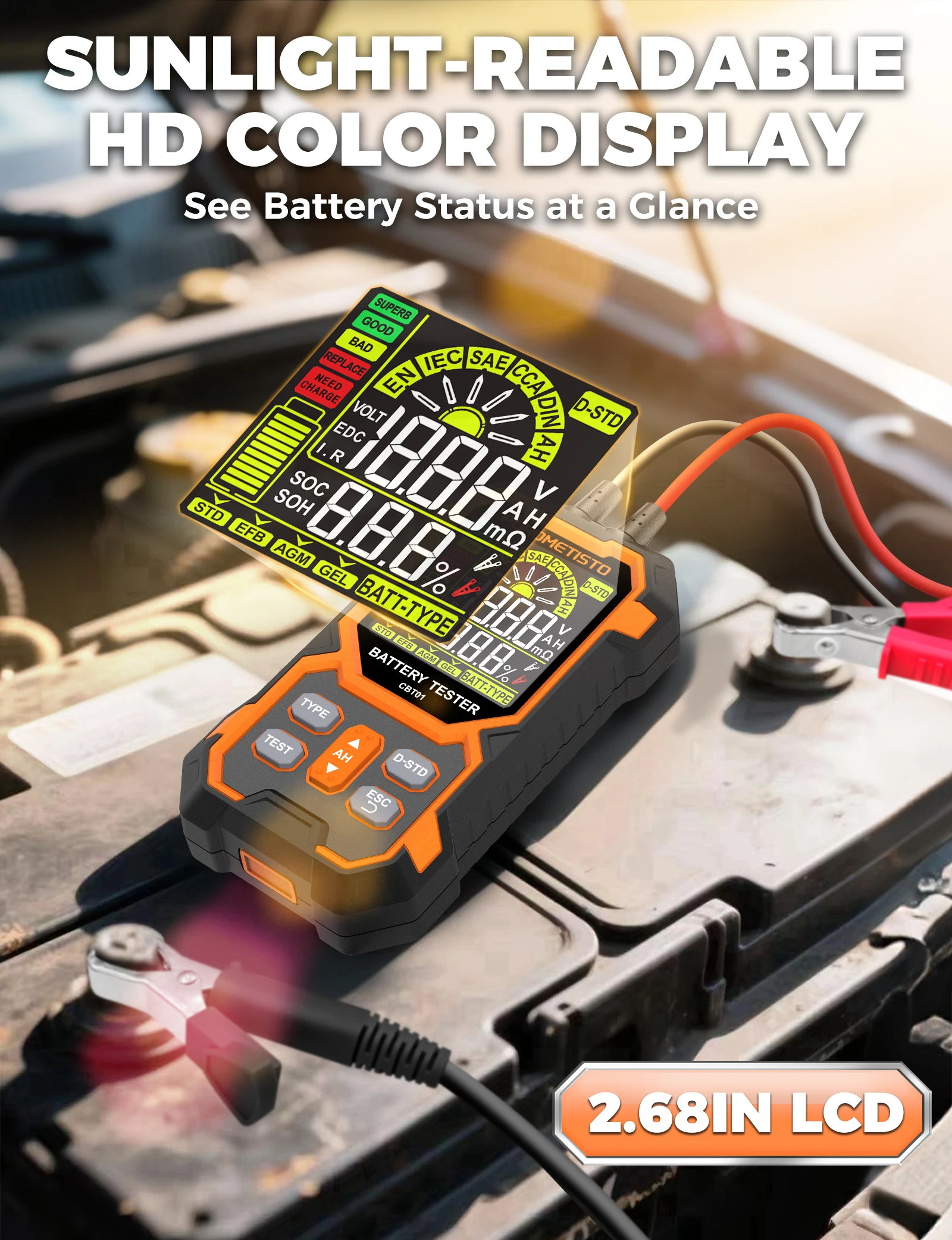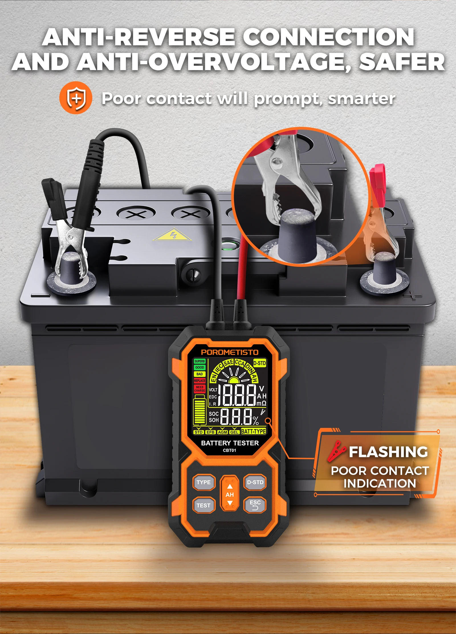Test directly on the vehicle battery — get instant diagnostics without disconnecting anything.